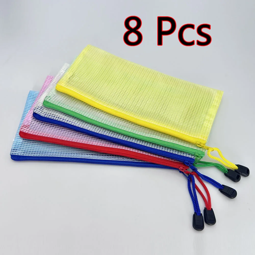 8pcs Waterproof PVC Zipper Pouch School File Organizer Document Pockets Office Bill Bags Folders Pouch Document Filing Bags